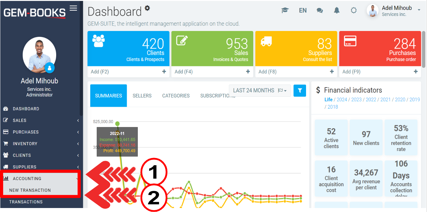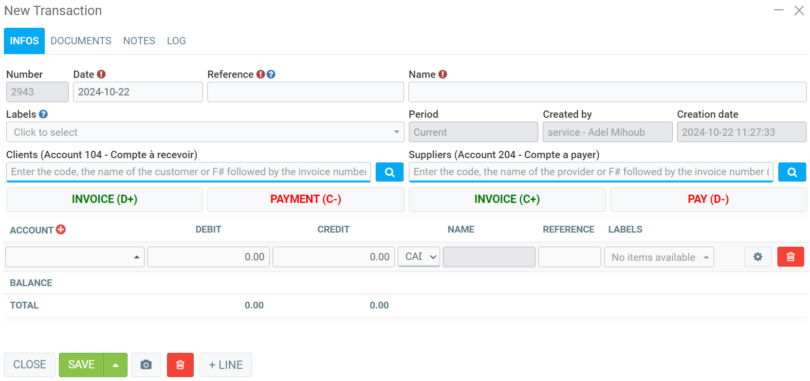 To do this, go to the menu on the left, click on Accounting > New transaction.