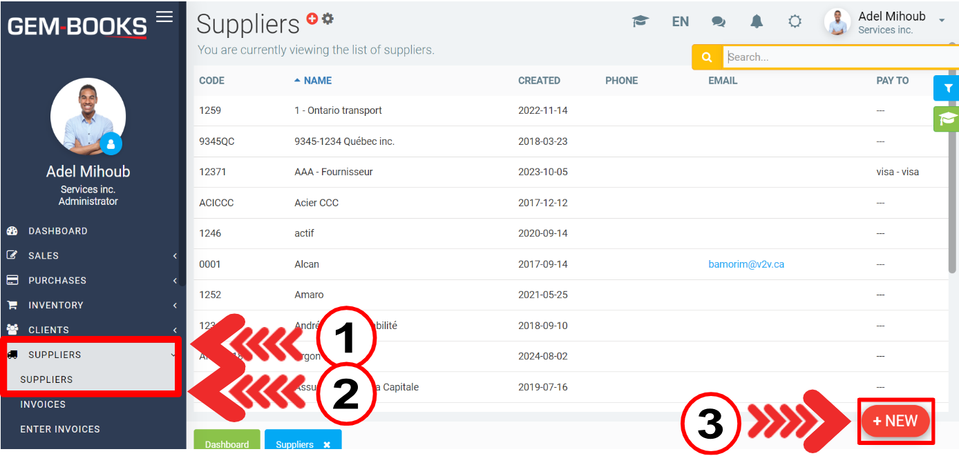 But if the supplier has not yet been registered, you need to click on the menu on the left.