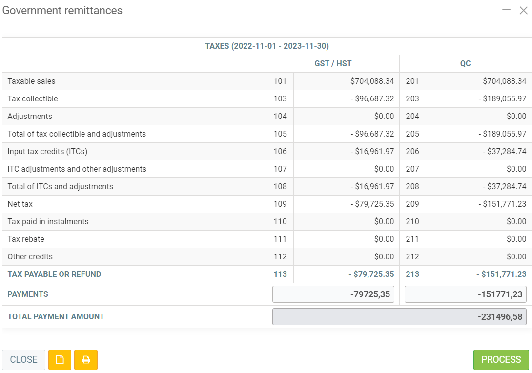 When you've finished, it's advisable to continue with the "Process" button to automatically post the accounting entry.