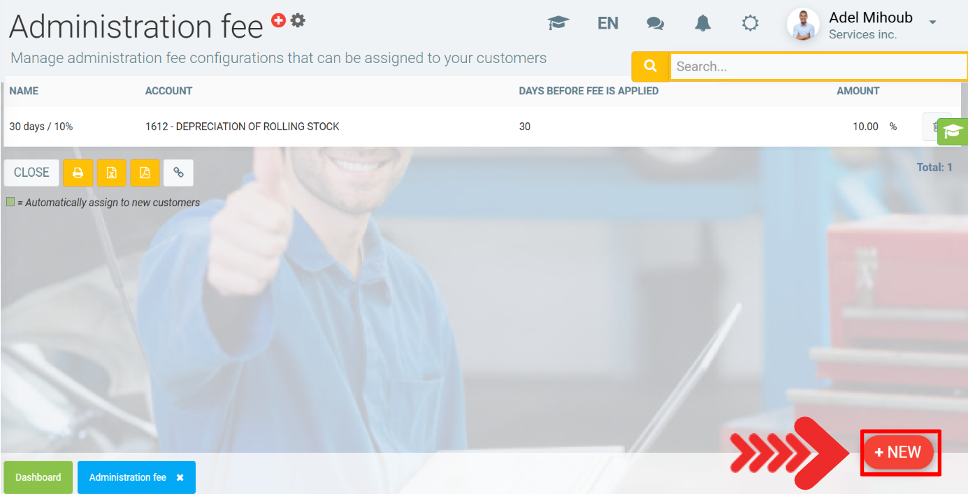 This is where you define your administration fee rules, which you can then assign to your customers.