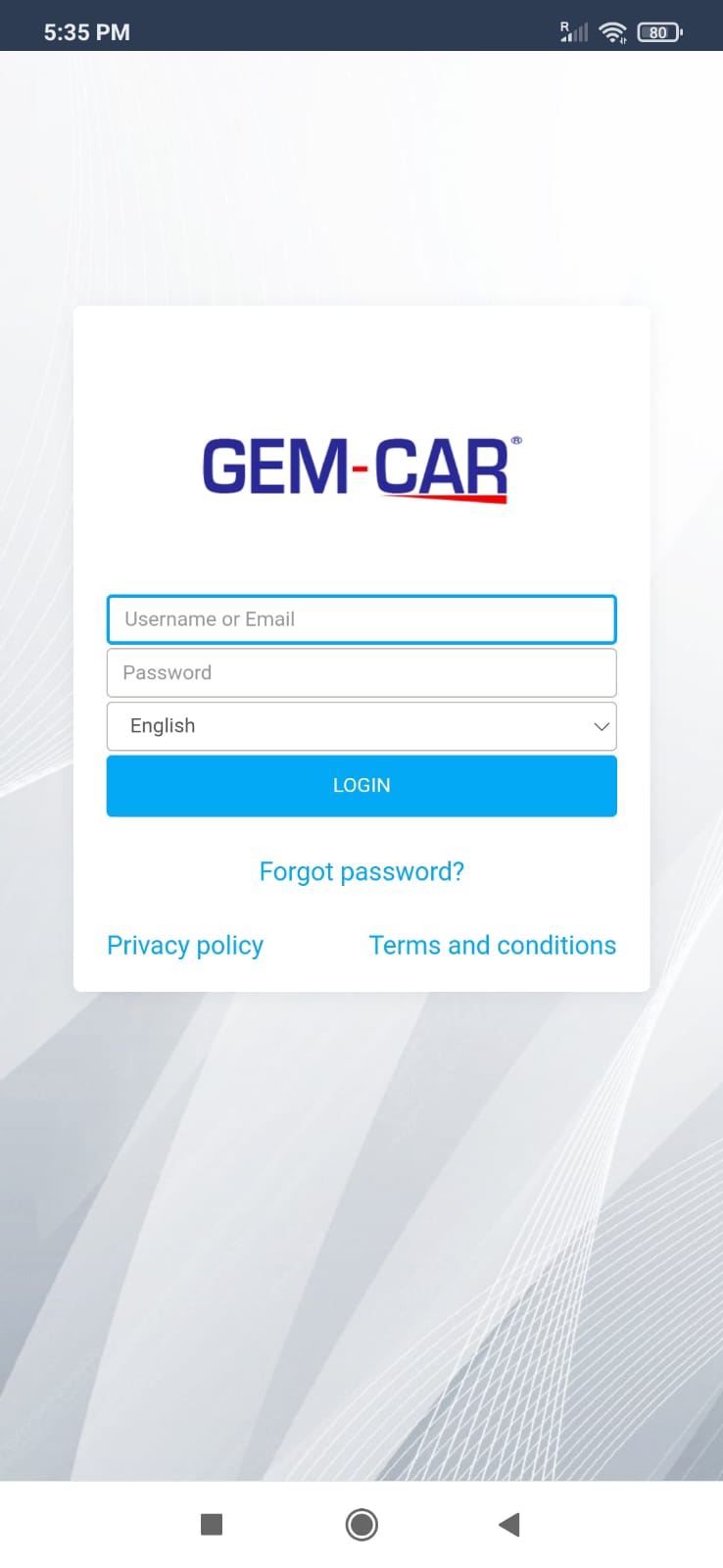 You can access your GEM-CAR account with your username or e-mail and password.