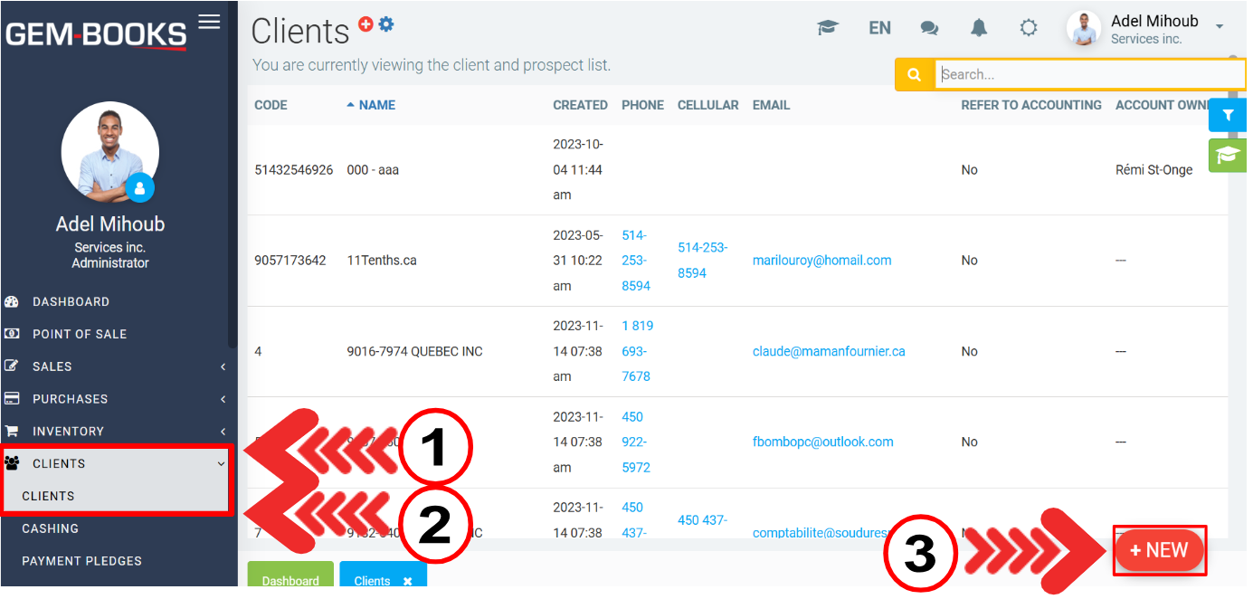 Creating a New Client from the Point of Sale in GEM-BOOKS