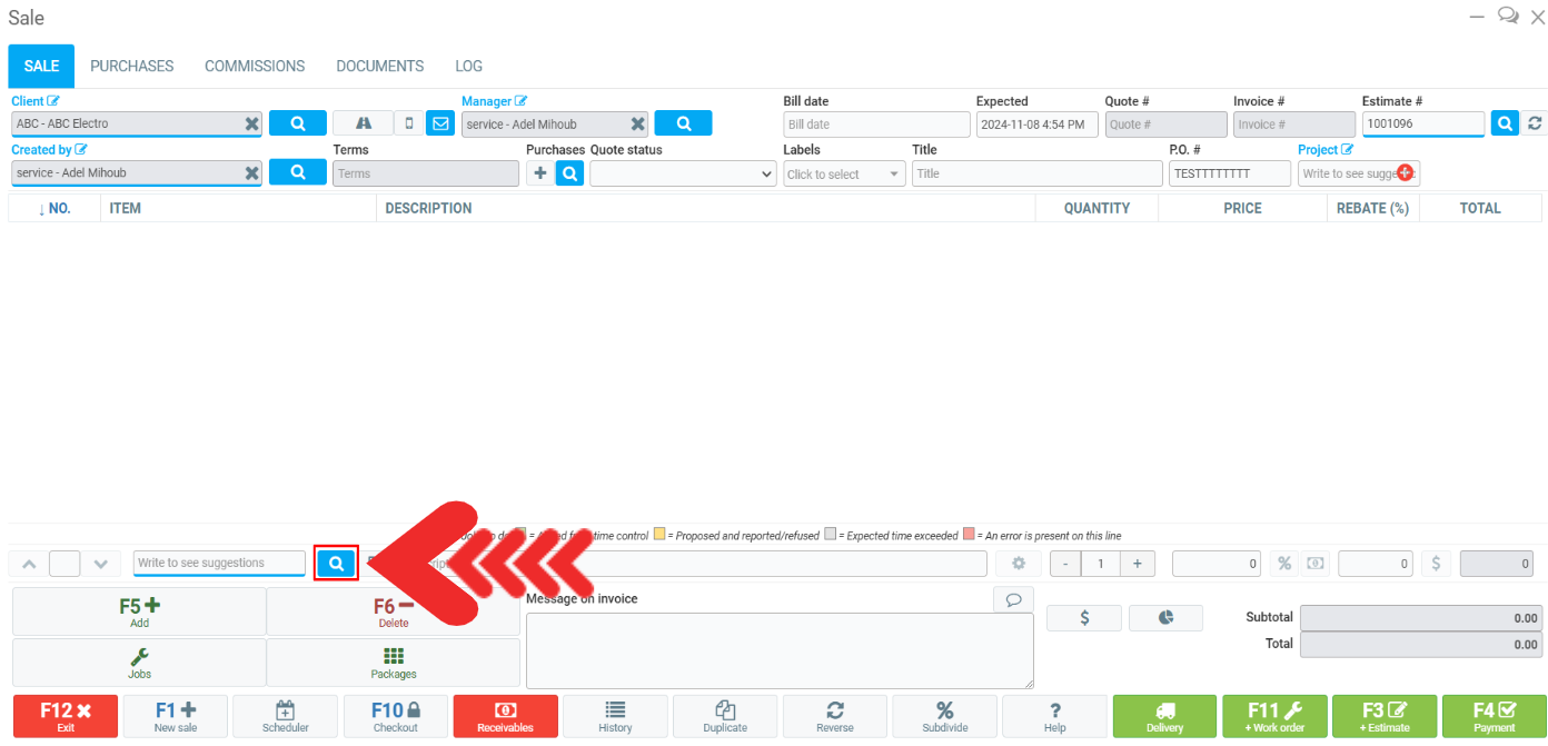 2. In the bottom left corner of the Point of Sale, click on the magnifying glass icon.