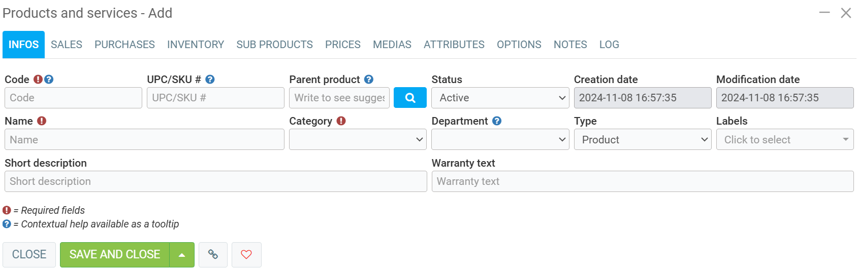 This will open a blank window allowing you to create a new Product or Service.