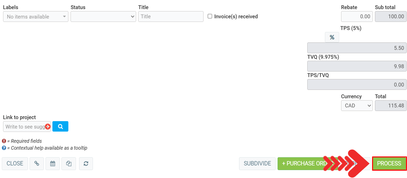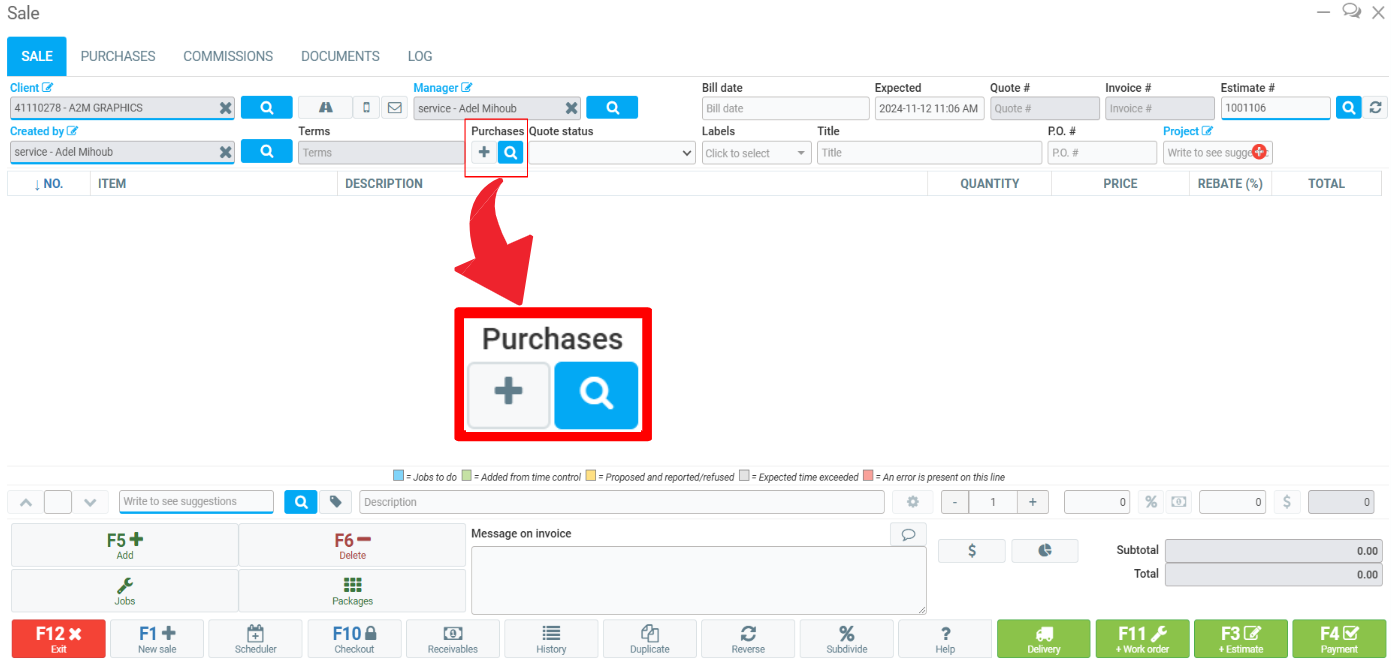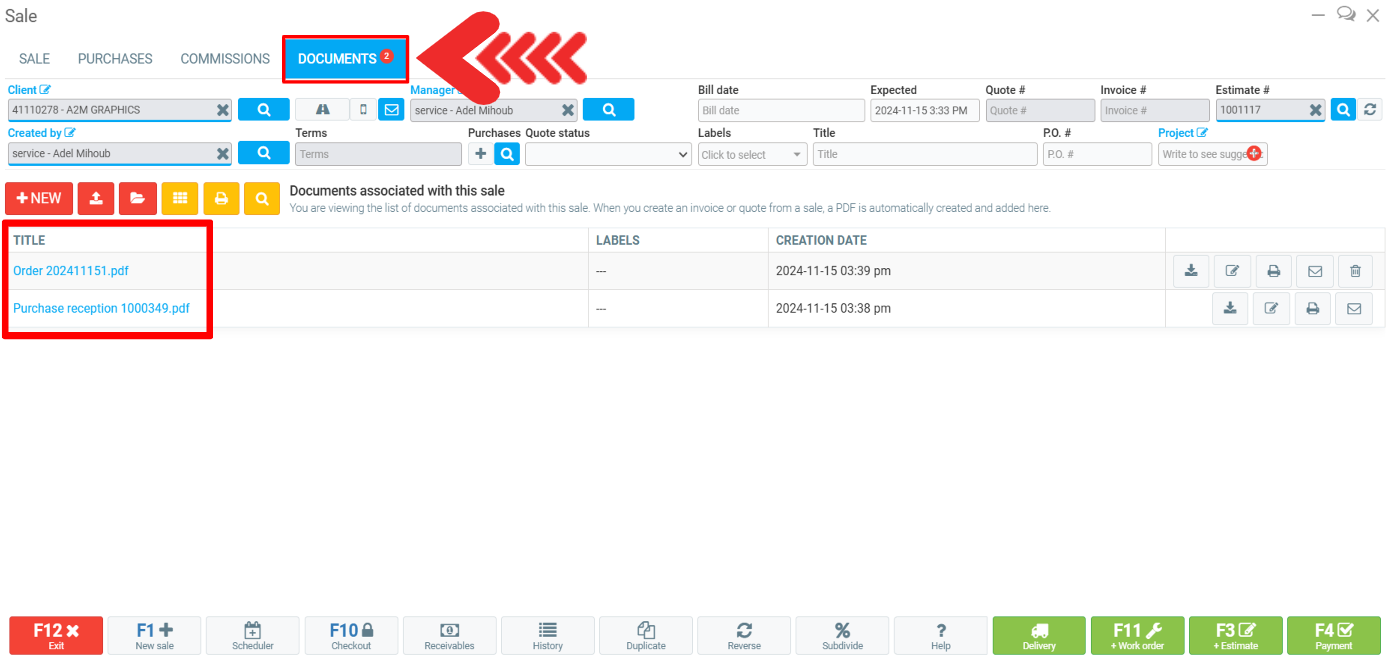 The products will now be part of your inventory. In order for the purchased products to appear on the work order and in the estimate, the products must be included in the sale at the Point of Sale. The work order, the estimate and the invoice can be accessed from the Documents tab.