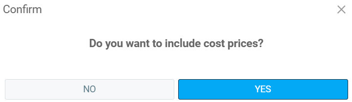 When clicking on the button + Purchase order, a confirmation window will open with the following message: ''Do you want to include cost prices?''. Click on Yes.