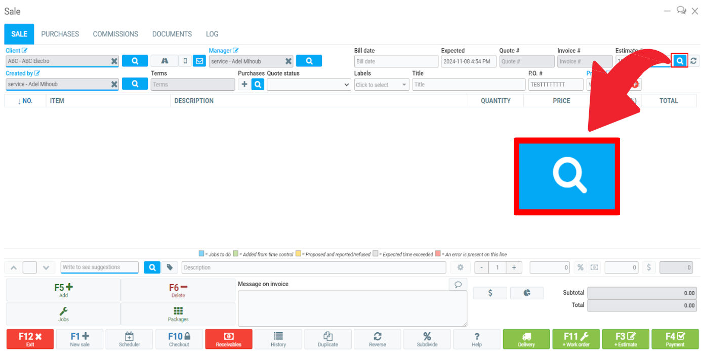 To do so, click on the magnifying glass at the top right of the Point of Sale, next to the estimate number.