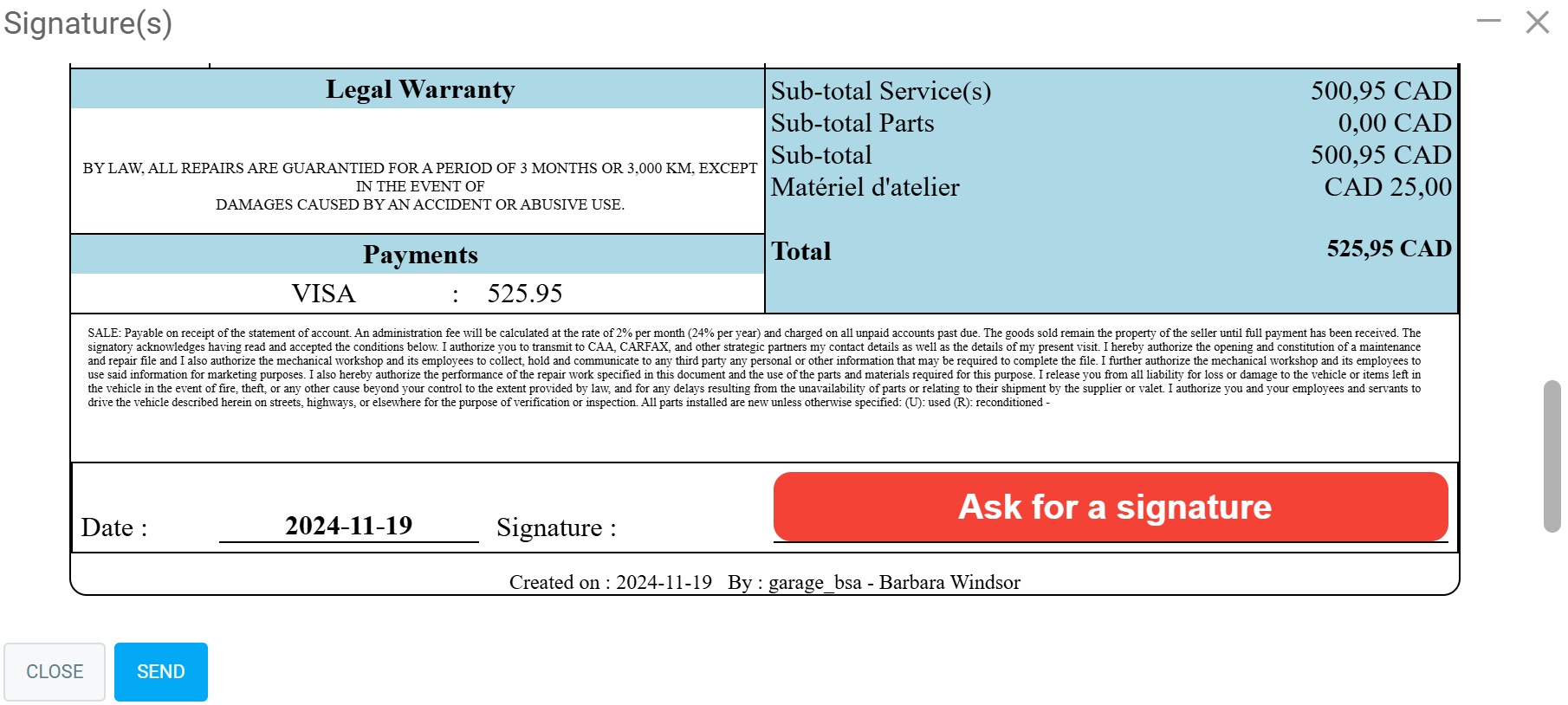 After the estimate, work order, or invoice is ready, send it to the client and wait for approval before proceeding with the services.