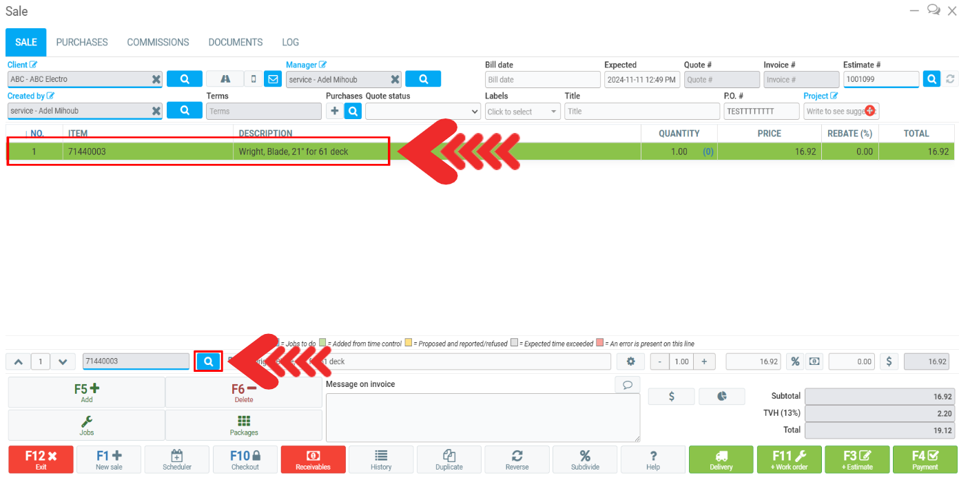 To modify the price of a Product or Service in the Inventory from the Point of Sale, first add the product to the sale.