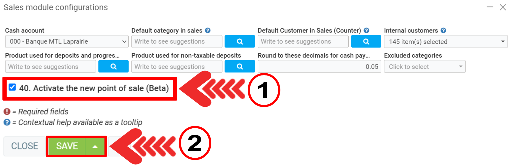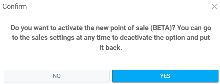 A dialog box will open with the following message: "Do you want to activate the new point of sale (BETA)? You can go to the sales settings at any time to deactivate the option and put it back." Click on Yes.