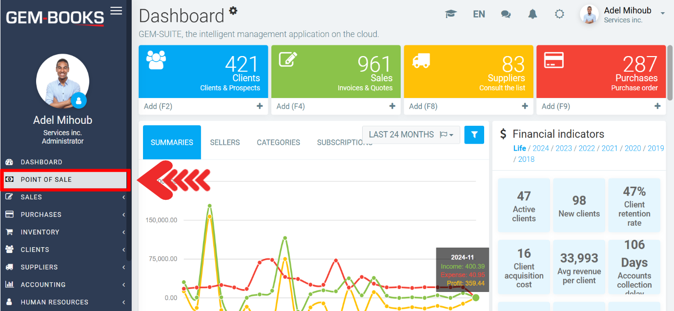 GEM-BOOKS now has a new window in its Beta version: the Point of Sale.