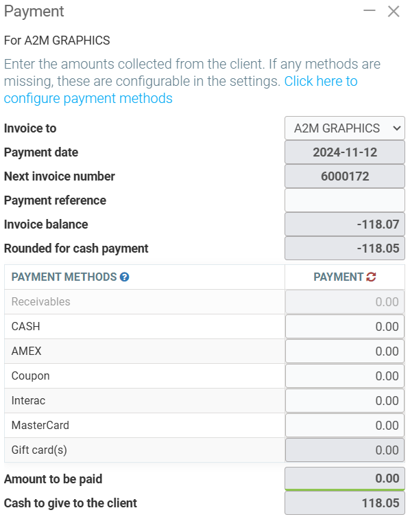 Click on Payment at the bottom right of the screen. Check the amounts and click on Send.