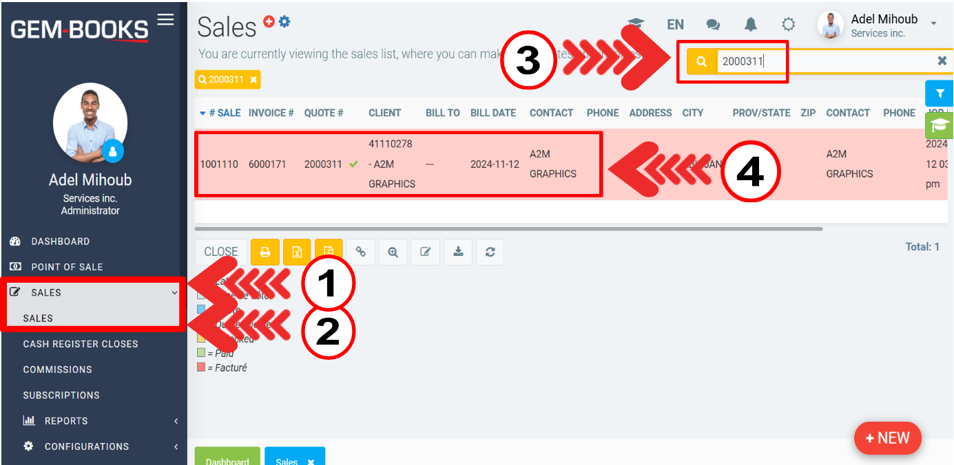 Retrieve Client's Estimate in the Point of Sale in GEM-BOOKS