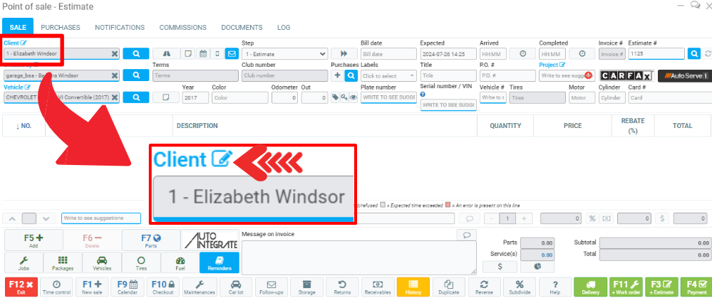 From the Point of Sale, it is possible to modify the client's profile with a simple click on the Client edit text on the left of the screen.