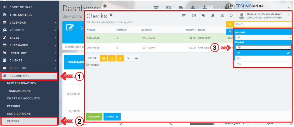 If you need to reprint a check, simply click on Accounting > Checks.