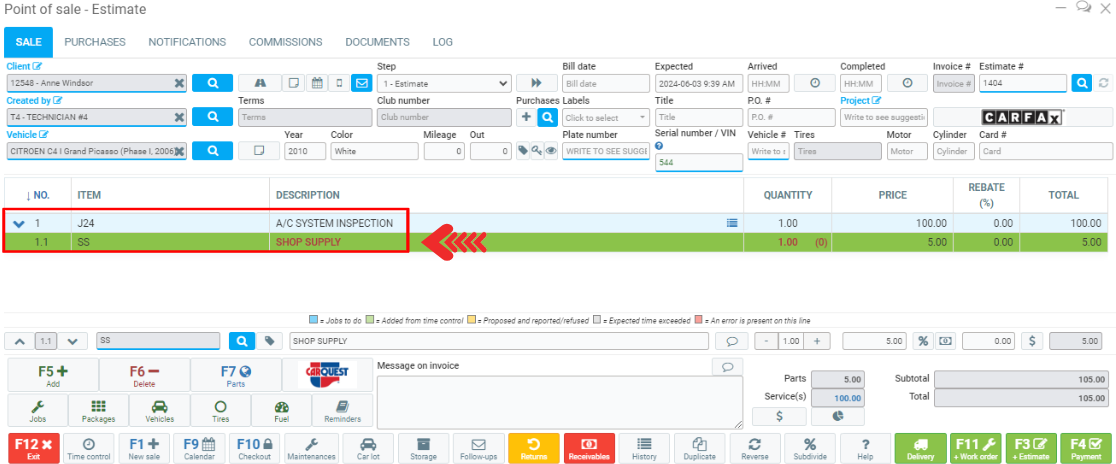 In GEM-CAR, you can configure the shop supplies charge function to appear on invoices.
