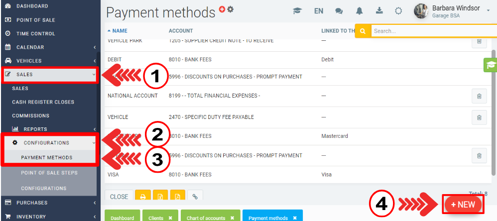 Before creating the payment method, click on Accounting > Chart of accounts > +New.