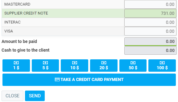 Open Point of sale to create a sale, invoice the supplier, and make the transaction receivable.