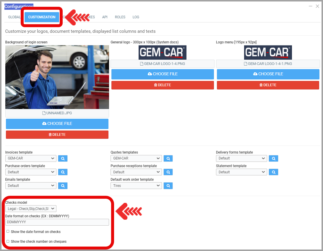 To customize your checks, from the main menu on the left of the application, click Configurations> Configurations > Customization tab.