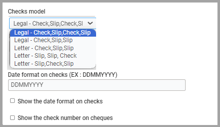 Choose Check Template: In the Check Template field, select the desired paper format and order for checks and check stubs.