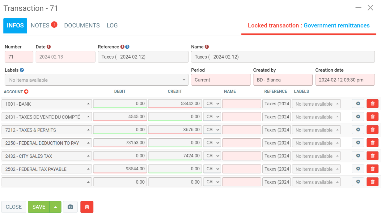 To validate, go to the automatically created transaction in the menu Accounting > Transactions.