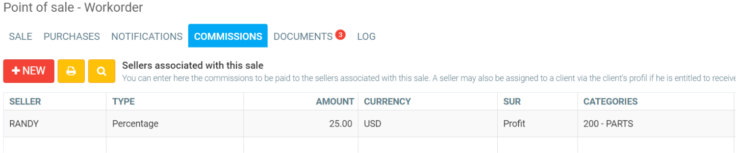 Depending on your configurations, this list will be automatically populated by the system and updated with each change applied to the sale (sale, profit, customer, etc.). You can also manually add commissions in this list, or modify those which have been added by your configurations.