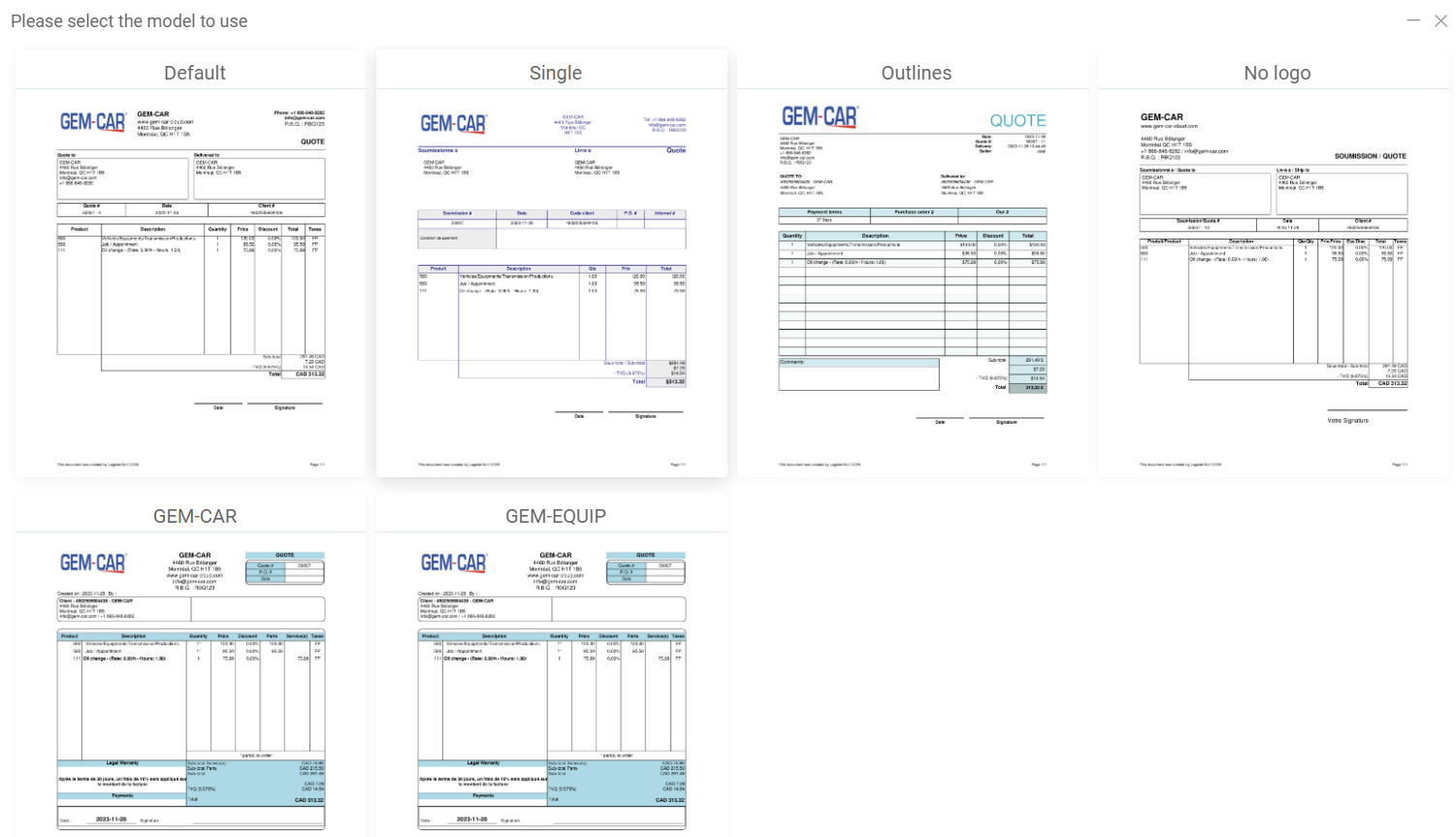 There are many models of documents like invoices and quotes you can choose from.