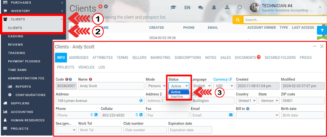 When one of your Clients, Suppliers, Accounts or even a Human Resource is no longer part of your current operations, you will want these records to be considered inactive. You no longer have to delete these records, which are now part of the company's past transaction history.