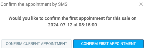 In the confirmation window, choose one of the options to confirm: the confirm the current appointment or the first in the schedule, both for the same customer.