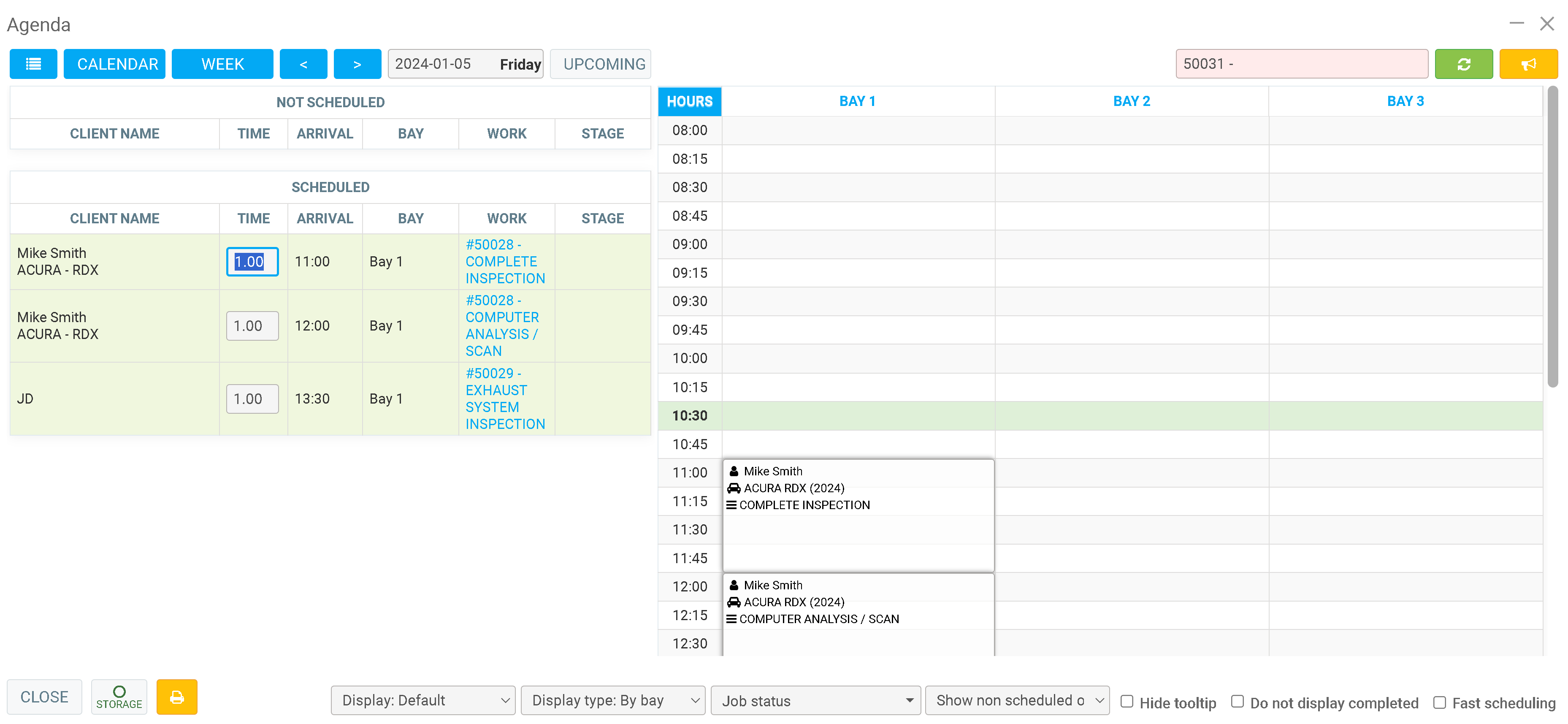 If the workshop does have appointments scheduled, they will be shown under the selected BAY.
