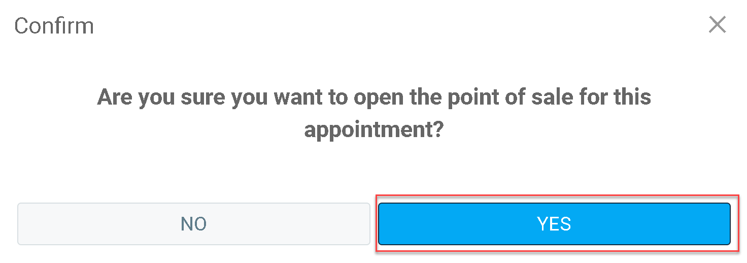 A window will display the message ''Are you sure you want to open the point of sale for this appointment''. Select Yes.