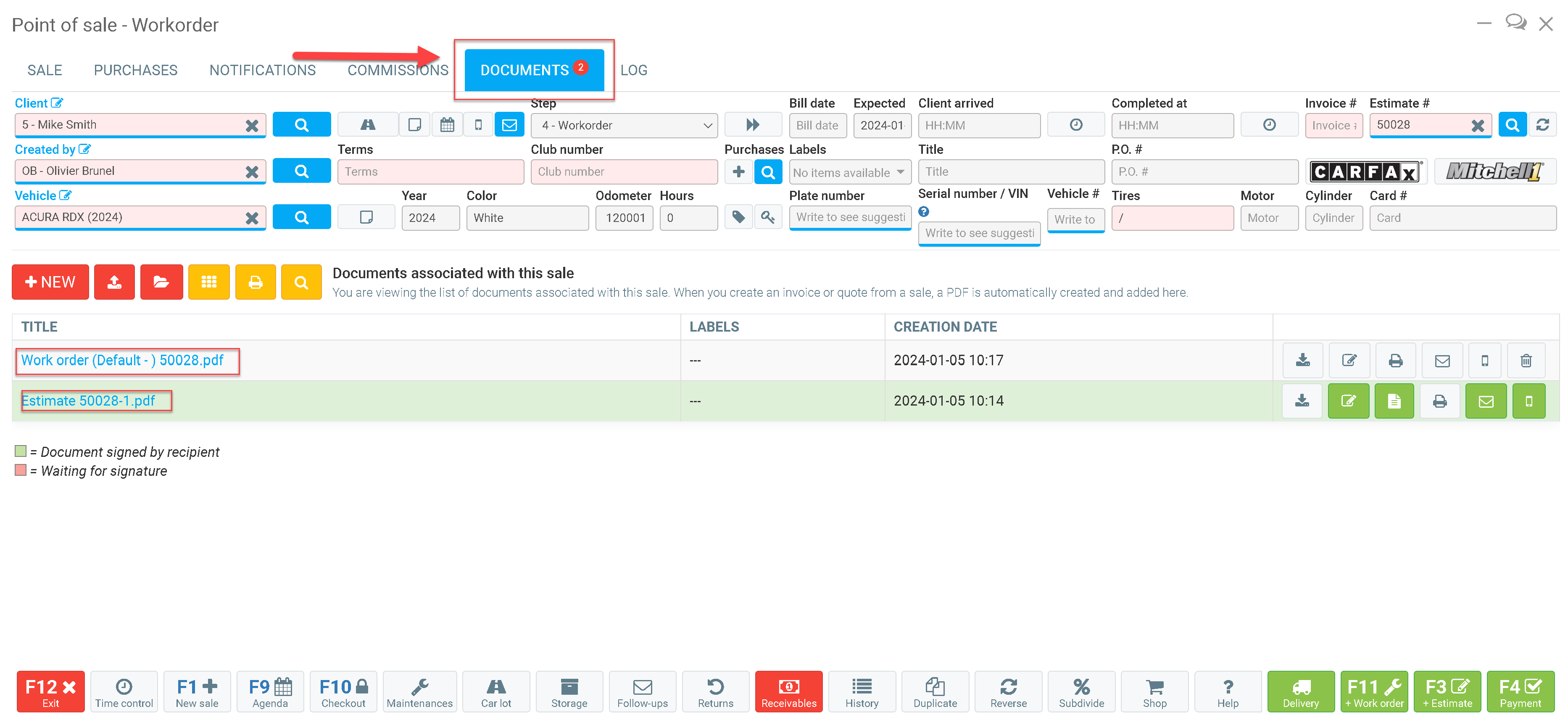 You are now in the Point of sale, where you can view under the tab Documents all the required paperwork before starting the job.