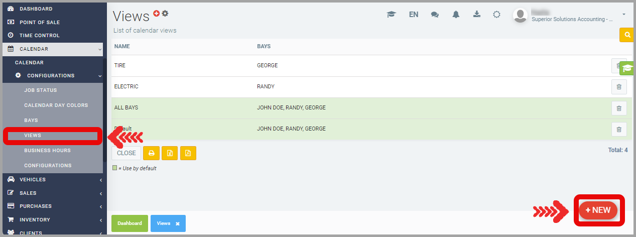 - In the Main Menu located on the left of the application, click on Calendar > Configurations > Views.
