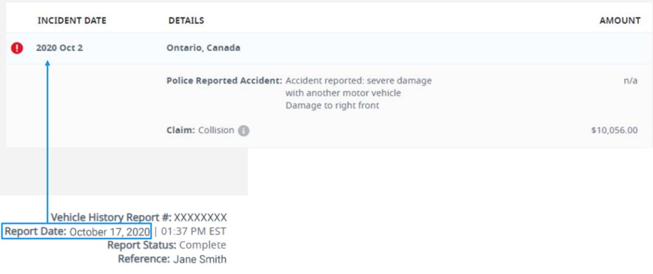 CARFAX - Common Questions on Vehicle History Reports - Incident Dates