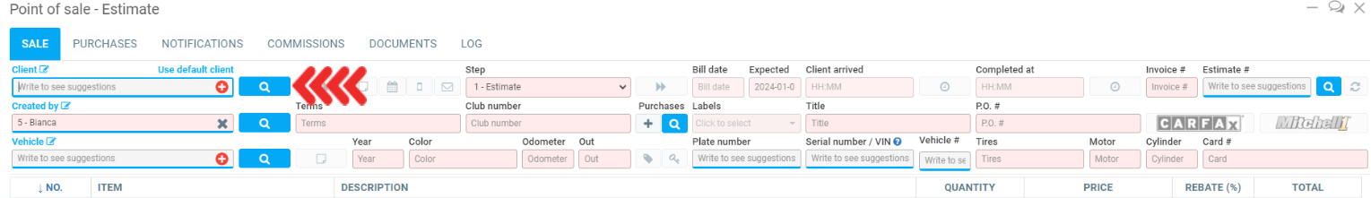 If this is a new client, GEM-CAR will remind you that there is no vehicle associated to this client.