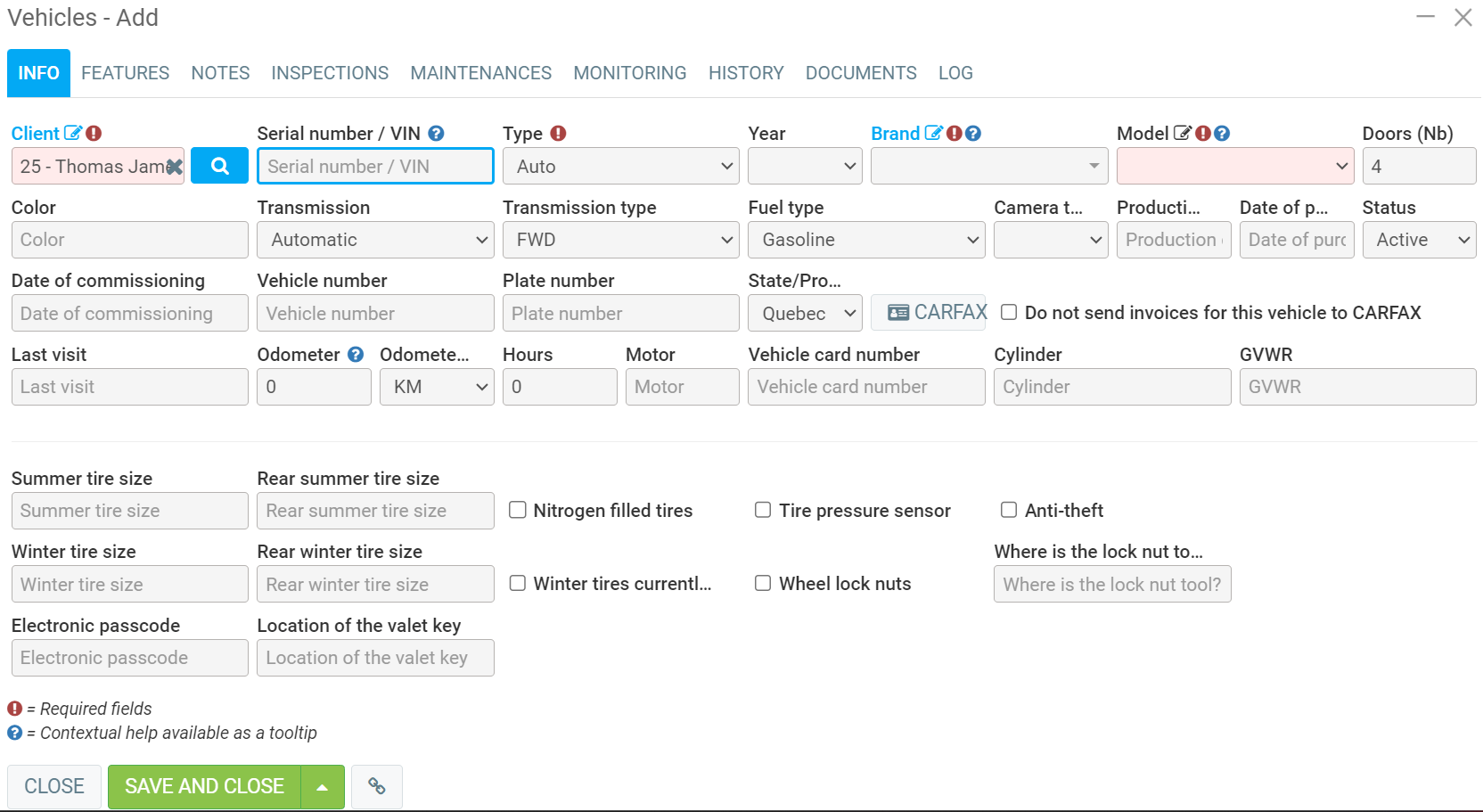 Click on yes and the Vehicle - Add window will open. You can use our license plate to VIN.