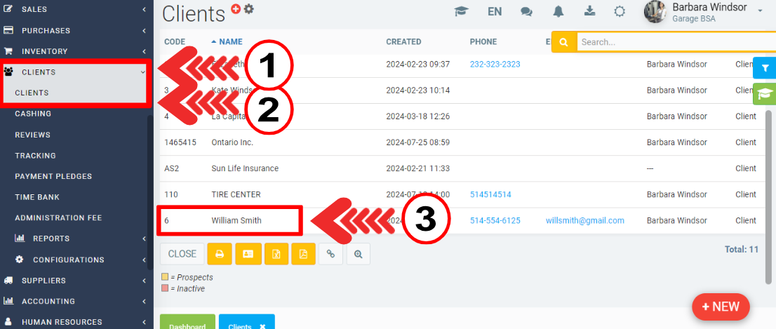 Then, in the list of clients, click on the client to whom you wish to send invoices.