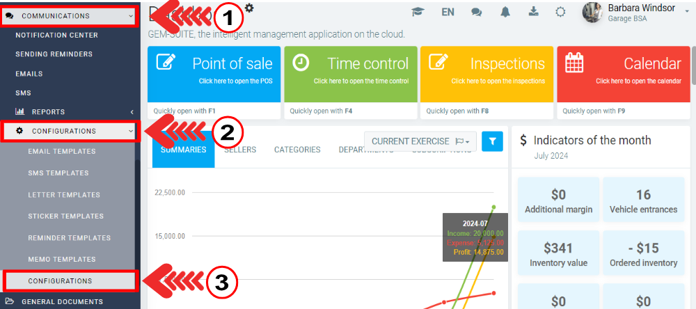 In order to configure a reply system with SMS and email, in the main menu click on Communications > Configurations > Configurations.