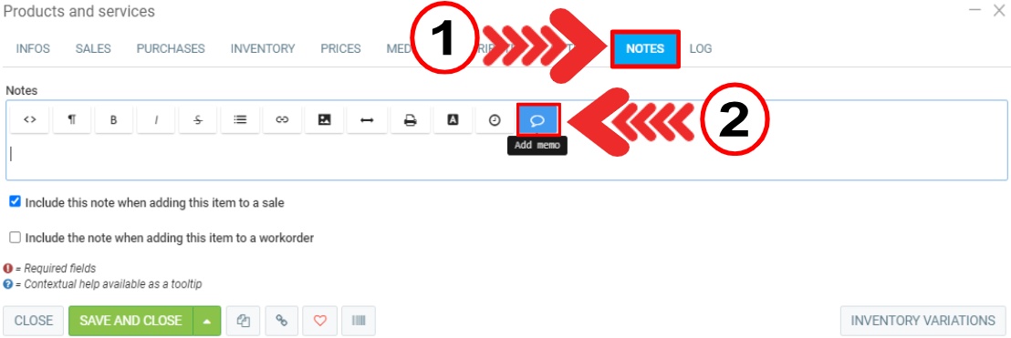 Create a Memo Template and Assign it as Product Note in the Inventory