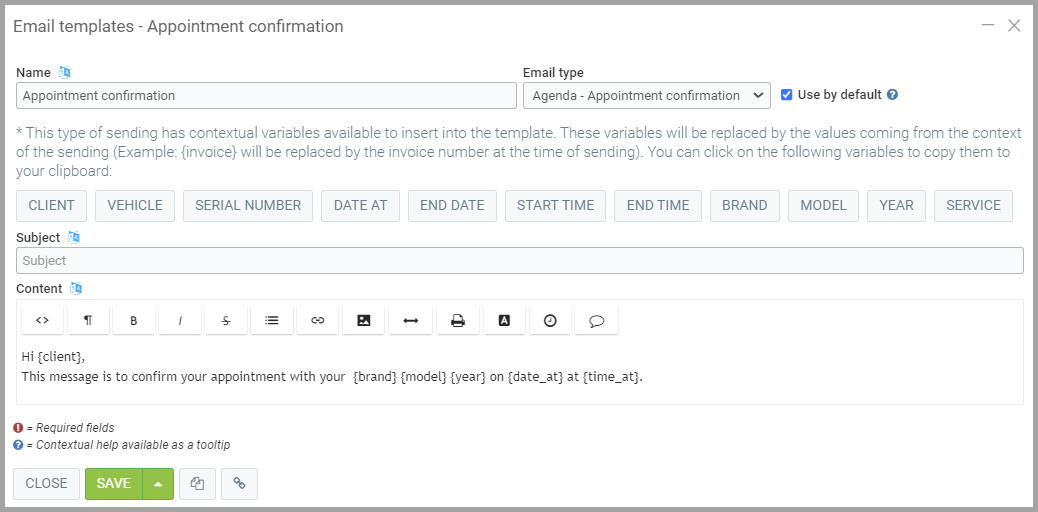 This message is to confirm your appointment with your {brand} {model} {year} on {date_at} at {time_at}.
