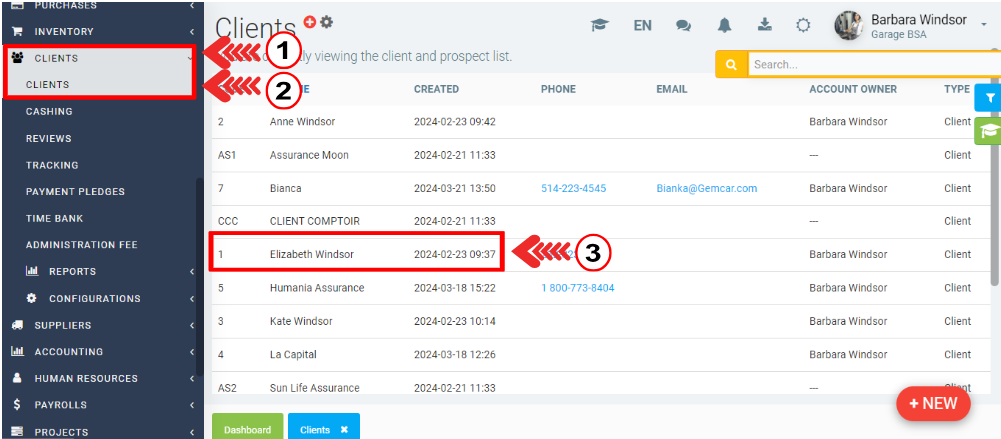To change the communication language for a customer, from the main menu on the left of the screen, click on Clients > Clients > Info tab.