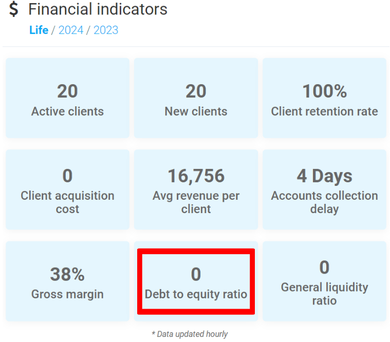 The debt/equity ratio is being used less and less by banks. Although it allows us to observe a company's financial progress, it neglects to take into account the company's profits or losses, as the case may be.
