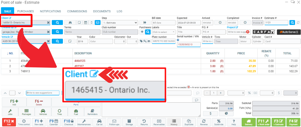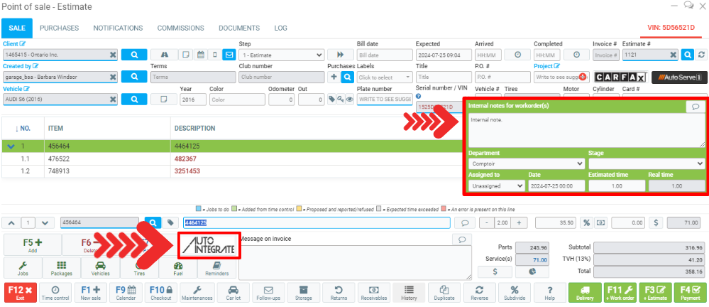 Back to the Point of sale, after adding the products and services the client needs, click on the button Auto Integrate, on the bottom left, near the button Delete, or press F7.