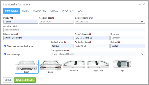 Ensure that your client's insurance company has a customer file in your GEM-CAR. If not, create the insurance company as a customer.