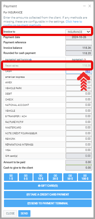 Note that the invoice is automatically placed in the insurer’s accounts receivable.
