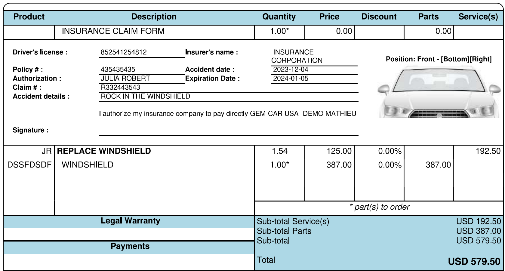 Use the Insurance Module for a Claim or for Windshield/Glass Repair/Replacement