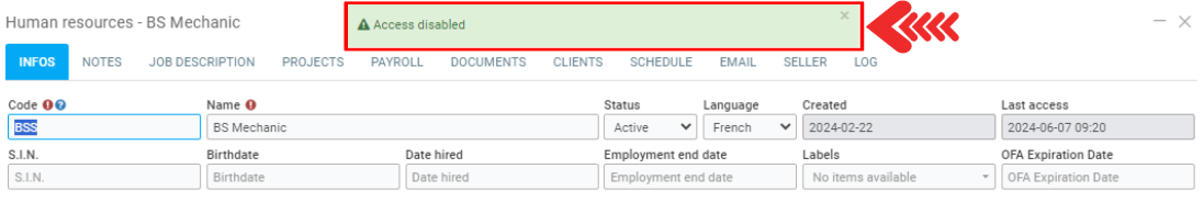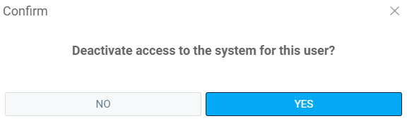 In the confirmation window, with the message: “Deactivate access to the system for this user?”, click on Yes.