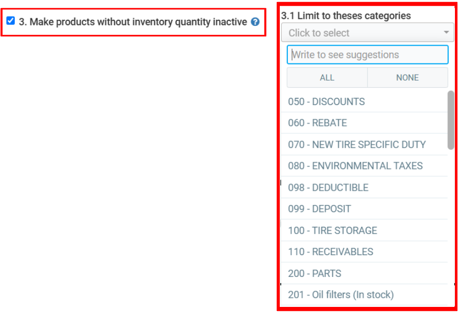 If you select the Make Products Without Inventory Quantity Inactive option, products that are not available in the inventory are automatically marked as inactive.