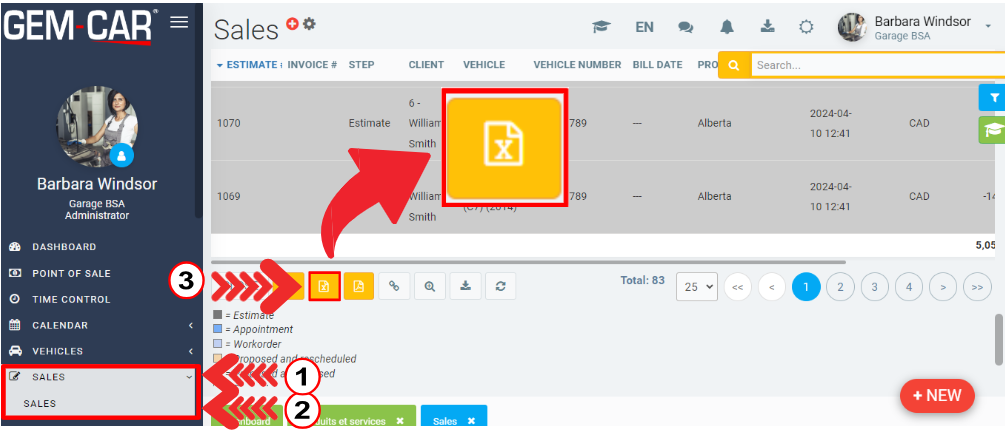 All screens with data that can be exported in this way will show you this yellow "X" icon, usually at the bottom, among a group of icons.