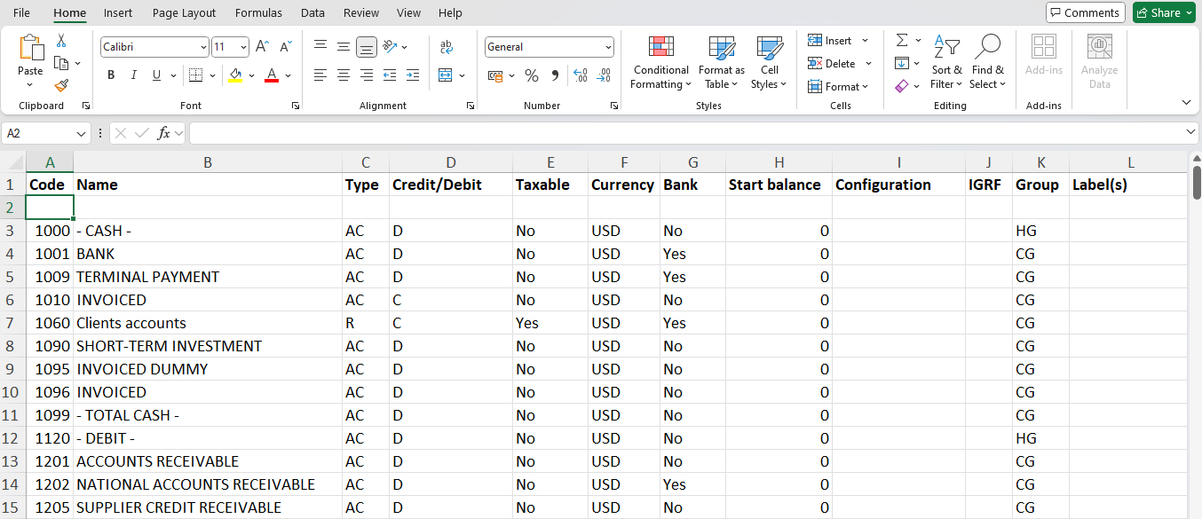 When you import an account chart, accounts already configured in Active will become inactive, and imported accounts will become active. So make sure that all your accounts are included in the account charter that you import.